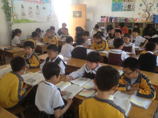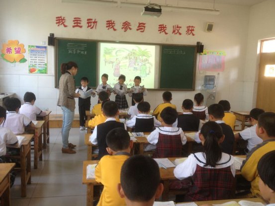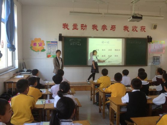 我校小学部语文组举行“小组合作与展示”教学研讨活动为了确定语文课“学什么—怎么学”的问题,五月初语文组制定教学研讨方案,主要是研究小学语文课堂的“小组合作与展示汇报”。5月12日下午第一节,全体语文教师在二年级一班,观摩了丁会老师的示范展示课。丁老师进行了精心的备课,对班级内的小组合作展示和个体展示都认真地培训指导。课堂上学生的参与度和积极性都很高,学生真正地成为了课堂的主人,学生们在课上自主读书、小对子合作交流识字、小组合作探究文章主问题、小组展示汇报感悟和体会,一个个都热情高涨,学生充分地说出自己所思、所感、所悟、所疑、所惑,学生在合作中探究,在探究中学会合作。之后进行了评课交流,收到了良好的效果。(李佳佳 刘冬冬报道) 丁会老师在讲授《画家与牧童》一课 课堂上孩子们在小组合作学习