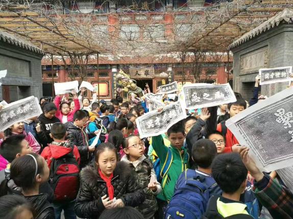 芳草学子参观匾额博物馆2017年3月16日,芳草地国际学校的五年级全体同学在书法张伟老师的带领下来到北京科举匾额博物馆进行参观。 芳草地国际学校党总支穆英书记参加此次活动,并讲话。 这个满是文化气息的博物馆位于北京市朝阳区高碑店,是由姚远利先生捐赠修建的。该馆占地面积约3000平方米。以科举匾额这一鲜明主题为切入点,组成系列文化,层次分明地介绍和见证科举制度,充分挖掘匾额中所蕴藏的丰富文化内容。