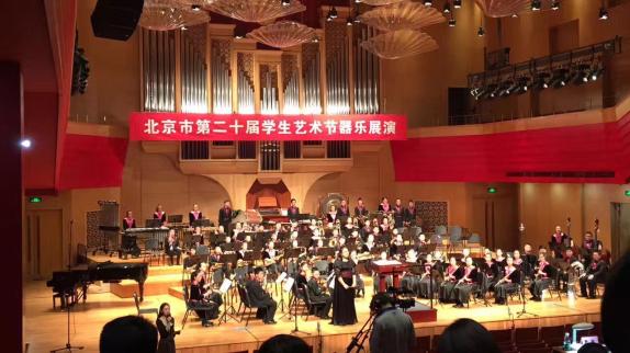 芳草地日坛校区“融之韵”金帆管乐团参加北京市艺术节比赛伴随着春天的脚步,北京市第二十届学生艺术节器乐展演在4月19日拉开了序幕。芳草地国际学校“融之韵”金帆管乐团参加了此次比赛。 “融之韵”金帆管乐团的参赛曲目为《打起手鼓唱起歌》和《指环王》。在指挥王珊珊老师的带动下,同学们的演奏欢快,富有表现力,小乐手们随着指挥遨游在音乐的世界,把情感表达的淋漓极致,所有同学都发挥除了最好水平,现场的观众都陶醉在优美的乐曲中。演奏结束后,评为老师对管乐团的表演进行了专业点评。表扬了优点,同时提出了宝贵的意见。
