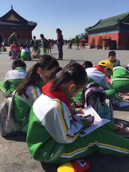 活动前一天,学校发放了研学单,学生们在家里做了充分的准备工作,在父母的协助下通过网络预先查找答案,带着收集的资料和问题来到天坛,信心满满地打算完成按图索骥的一天.